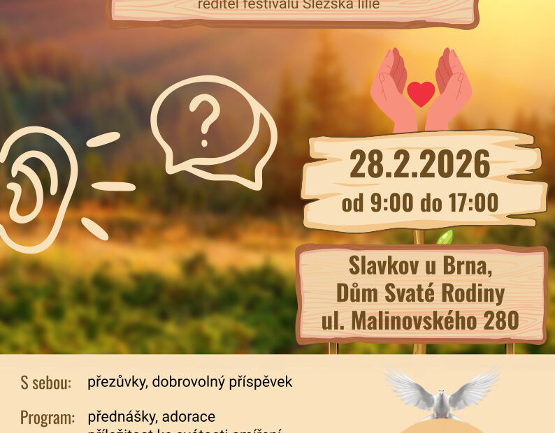 Děkanství slavkovské a Chudé školské sestry Naší Paní zvou na duchovní obnovu na téma Žena naslouchání, žena služby, kterou povede P. Darek Sputo, ředitel festivalu Slezská lilie. Kdy: 28. 2. 2026 od… Číst dále »Duchovní obnova pro ženy 28. 2. 2026