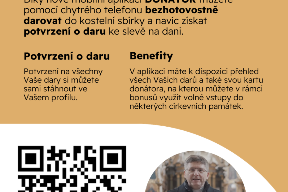 Díky nové mobilní aplikaci DONÁTOR můžete pomocí chytrého telefonu bezhotovostně darovat do kostelní sbírky a navíc získat potvrzení o daru ke slevě na dani.