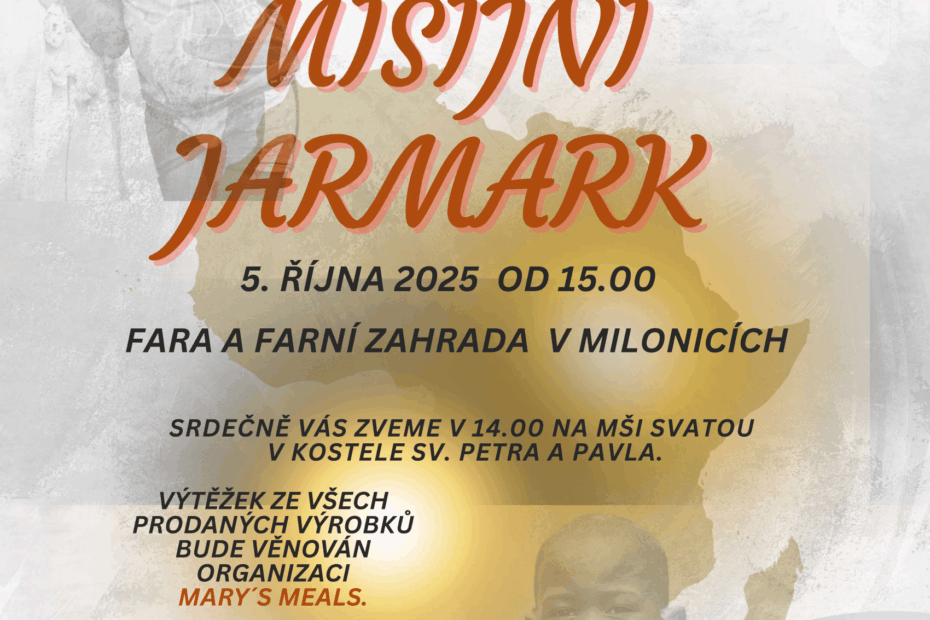 Srdečně Vás zveme na tradiční misijní jarmark, který se bude konat v neděli 5. října odpoledne od 15:00 na faře a farní zahradě v Milonicích. Před jarmarkem bude ve 14:00 mše svatá… Číst dále »Misijní jarmark 5. 10. 2025